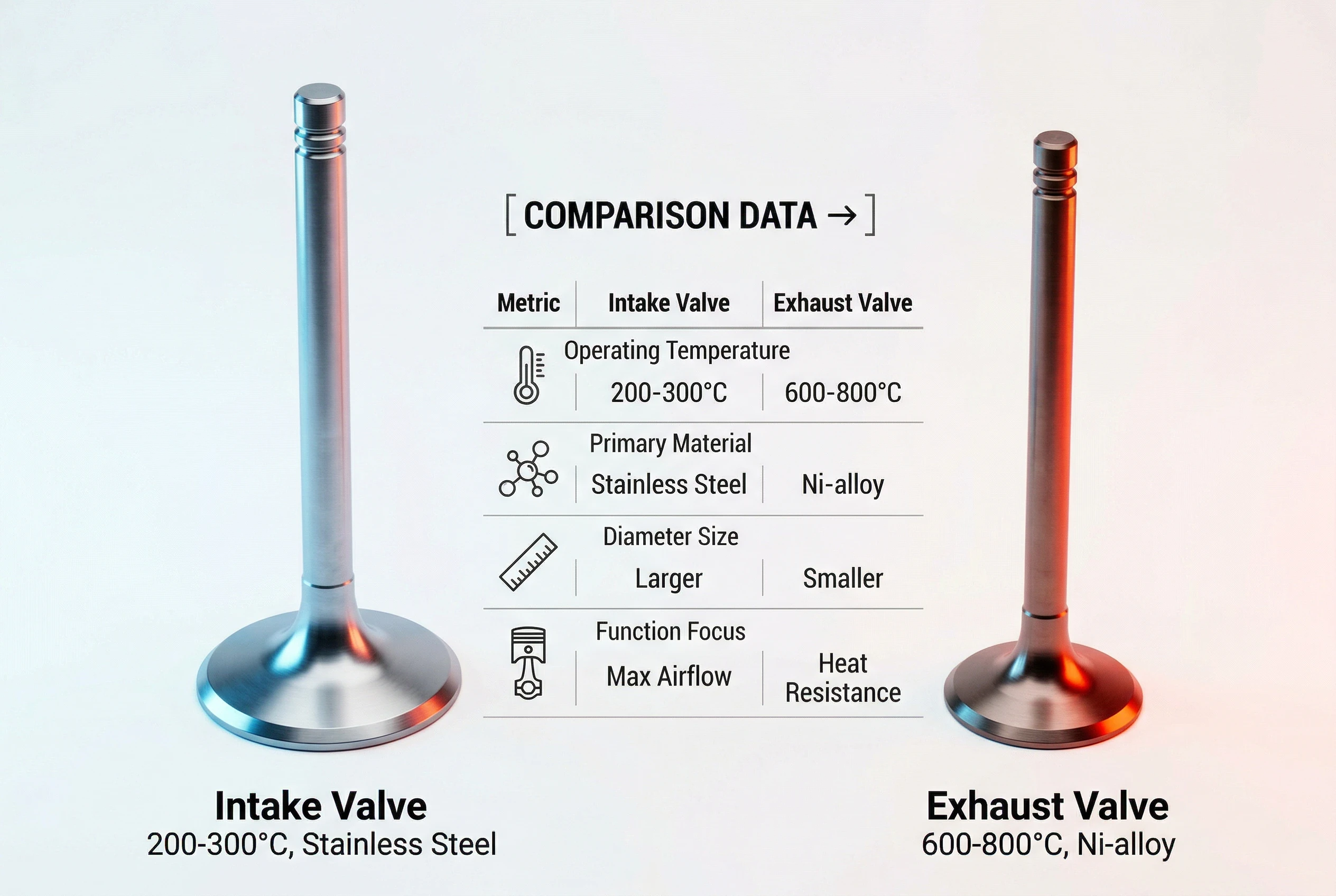 Exhaust valves face the harshest conditions in the engine, directly exposed to hot combustion gases, which is why they require superior materials and often fail before intake valves.
