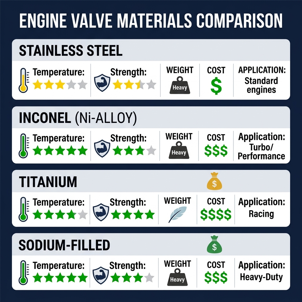 High-temperature resistance: Especially for exhaust valves (up to 800°C)