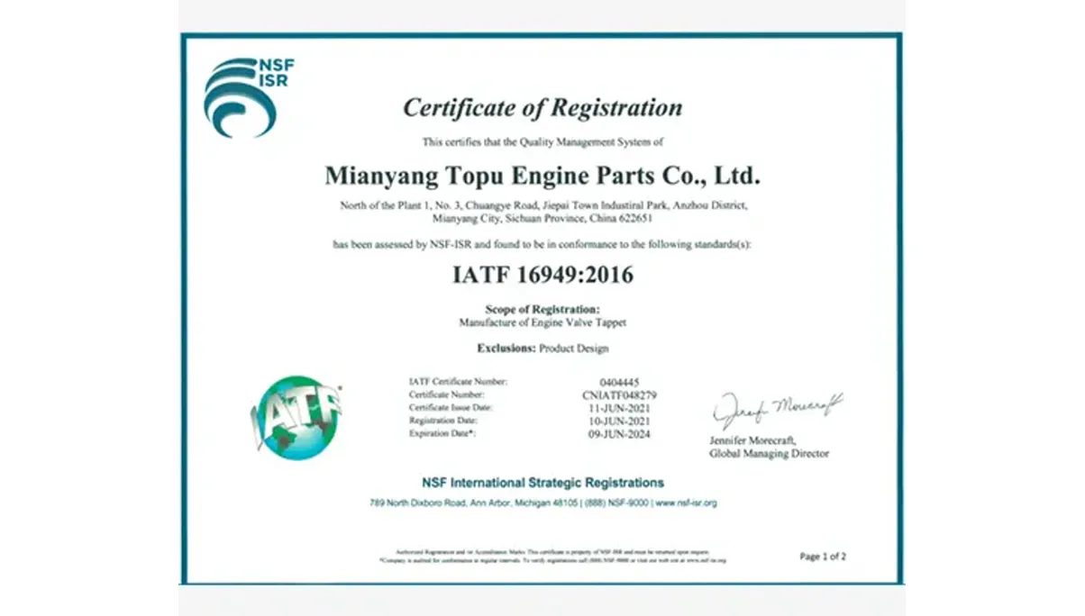 Ang TOPU ay isang IATF 16949 certified, world-class engine valve manufacturer at valve lifter supplier. Taglay ang kumpletong in-house na kakayahan mula sa friction welding hanggang sa advanced nitriding, nagsusuplay kami ng milyun-milyong precision valvetrain components sa mga pandaigdigang proyekto ng OEM at tier-1 distributor.